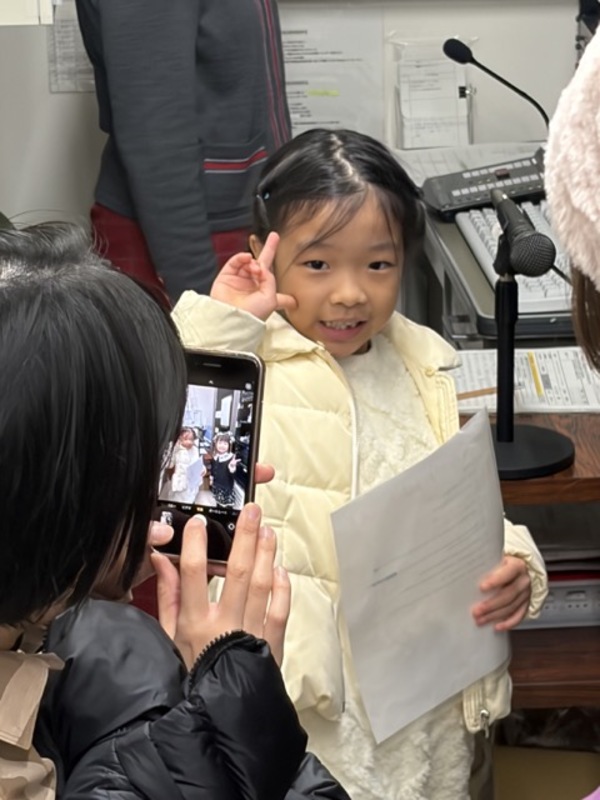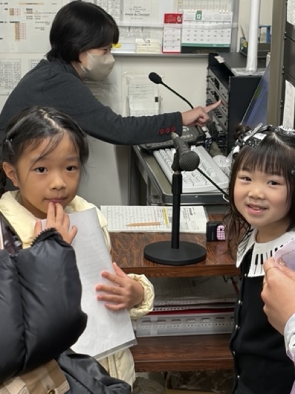 吉田幼稚園の2人のお友だちに協力していただき、本日、ナレーションを収録してきました。