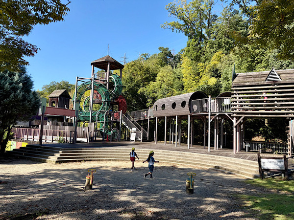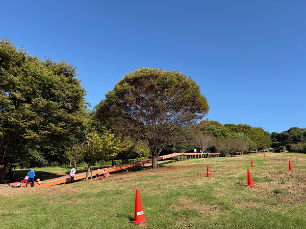 当初は斜面部分の土が雨風で崩れることのないよう補修のみ行う予定でしたが、先んじて改修したグラスデッキが子どもたちに大好評でしたので、全面芝生化した上でさらに大型遊具を設置することにしました。