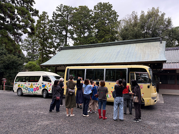 きく組の子どもたちが貼り絵で作成した大絵馬を吉田神社に奉納しました。