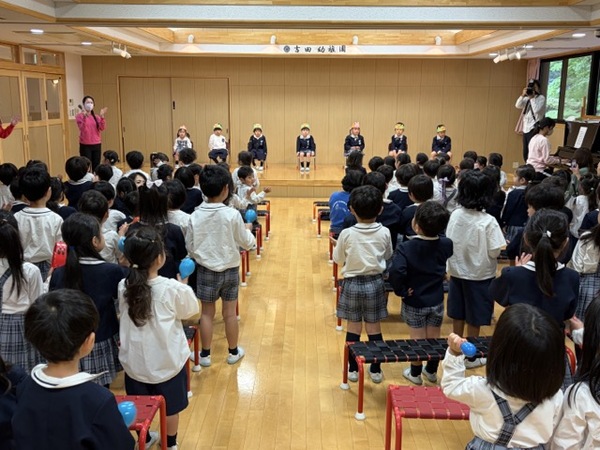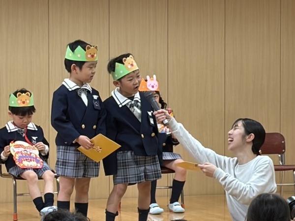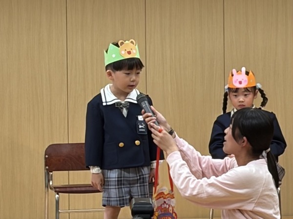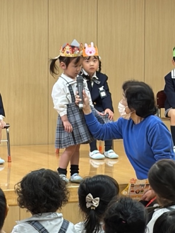 園長先生や来賓の方々からの挨拶や幼稚園の先生たちの紹介をして、